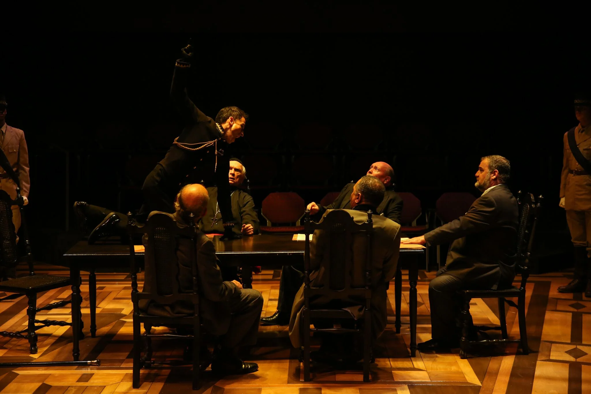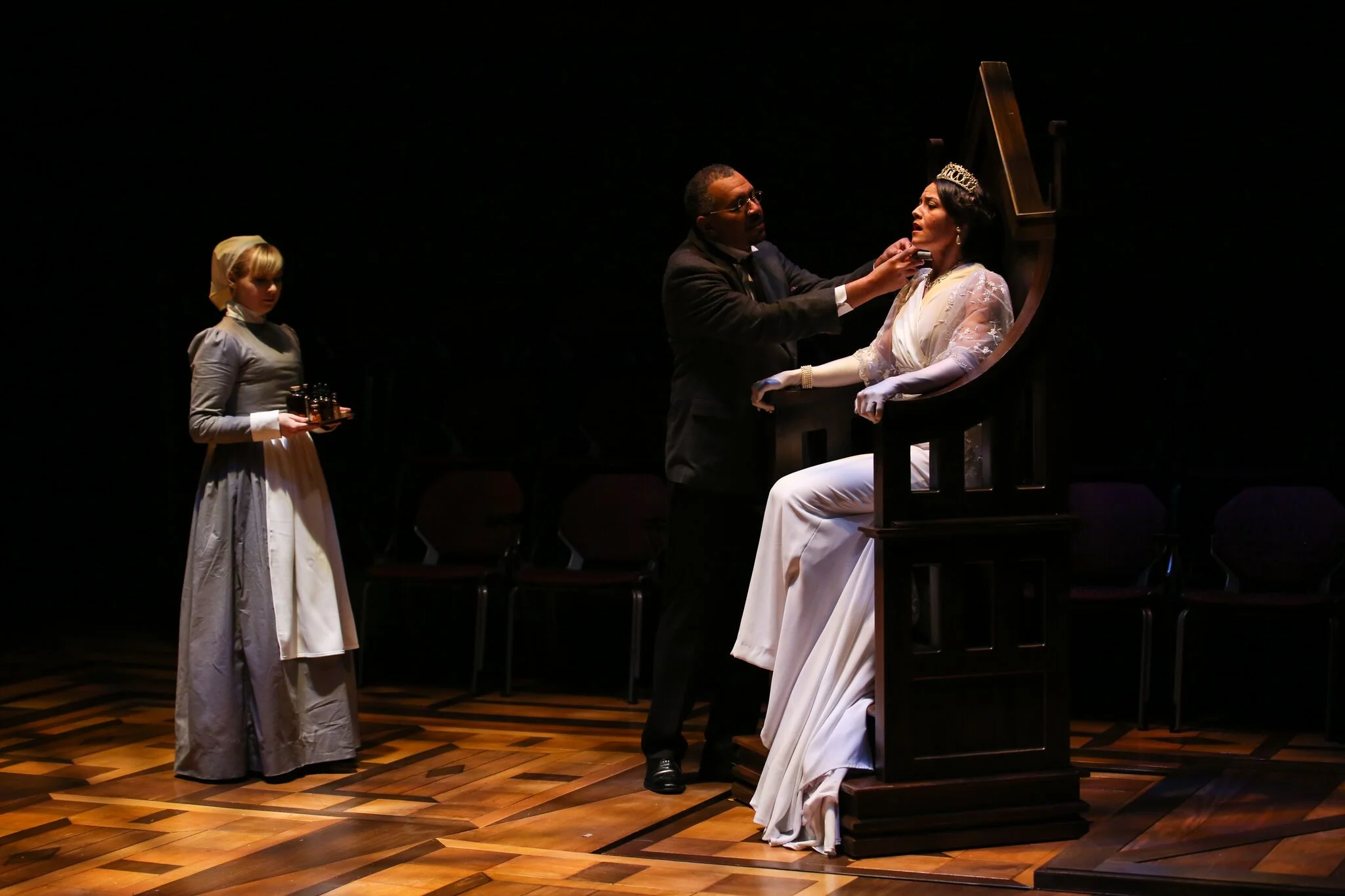 "As the play unfolds on the Hays stage, a claustrophobic, sinister sense akin to drowning in quicksand overwhelms with Hackler’s Richard a suffocating, destructive driving force. Trinity Shakespeare Festival’s bold, evocative production embraces the play’s text with genuine respect while revealing the warped motivations of the megalomaniacal, hallucinatory Richard with a very modern sensibility. Horrifying in deed, the performance gratifies as living art.... This Richard III is a resonant and elegant production, where director’s vision and the design team and actors’ realizations enliven this early play in Shakespeare’s canon with superb and terrifying grace."
